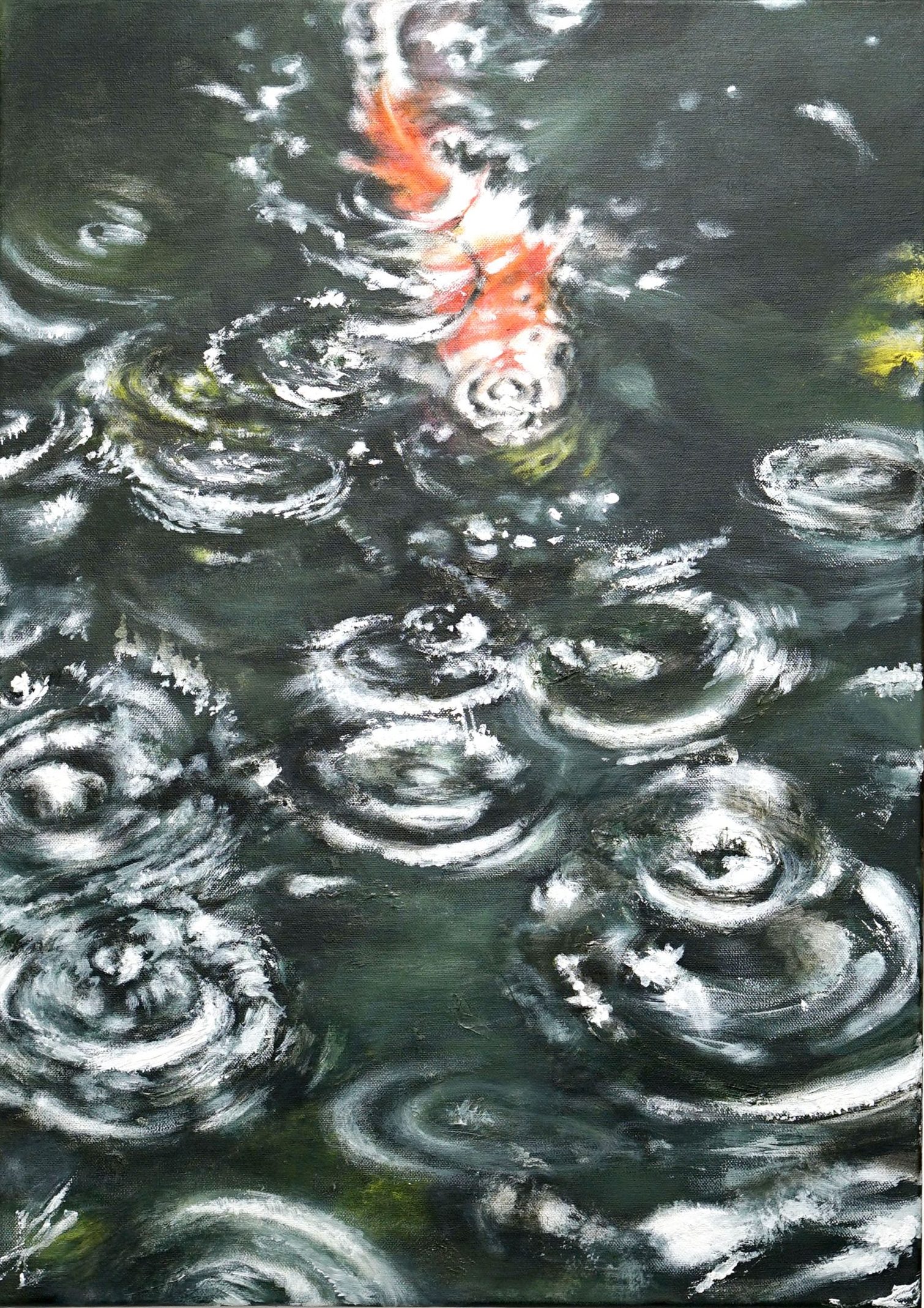 ‘A Flash of Red and Gold’, acrylic on canvas, 50 x 70 cm, £950